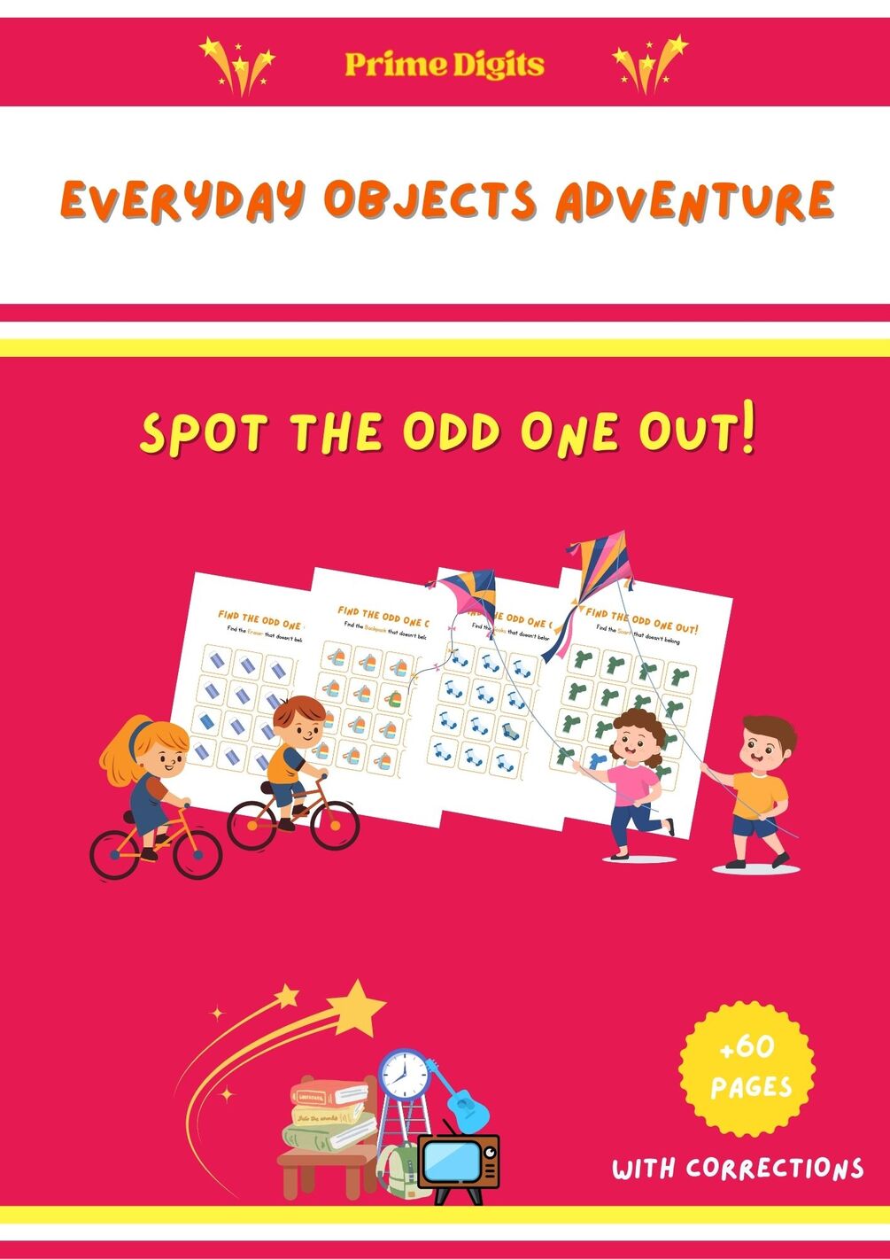 Get ready for an exciting journey through the world of Everyday Objects with 'Spot the Odd Object Out!' Perfect for children ages 4 to 8, this fun and interactive activity book challenges young explorers to search through colorful, everyday scenes and find the one object that doesn’t belong. Designed to enhance problem-solving skills, boost focus, and teach kids about the objects they see around them, this book provides hours of brain-teasing entertainment. Discover surprising items, sharpen your critical thinking, and have endless fun spotting the odd one out in familiar settings!